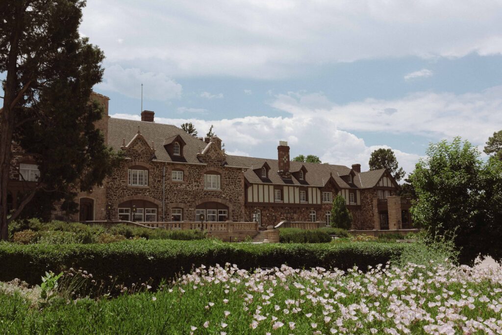 Highlands Ranch Mansion basically a castle with a stunning garden out front and incredible library inside, with both an indoor and outdoor ceremony space